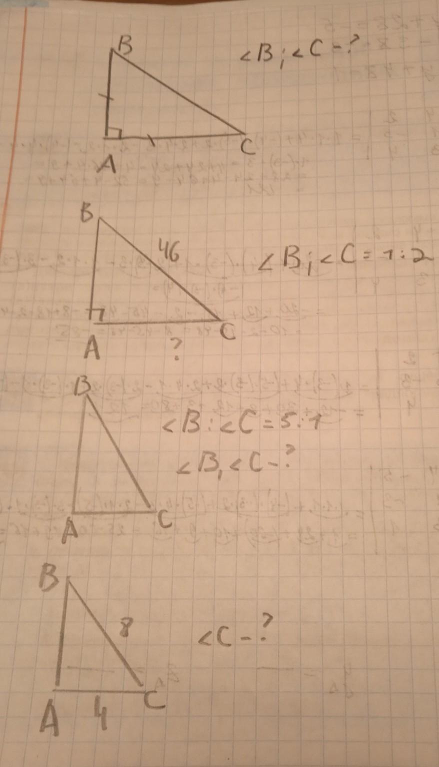 1) Треугольник прямоугольный и угол А равен 90, тк это треугольник равнобедренный, то углы при основании равны, те по 45