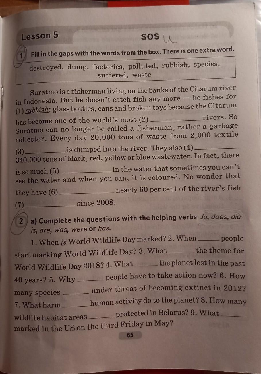 1) 2 polluted, 3 factories, 4 dump, 5 waste, 6 destroyed, 7 species