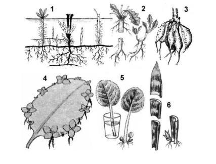 1. Какие способы размножения корнями изображены на рисунке (1 – 3)?