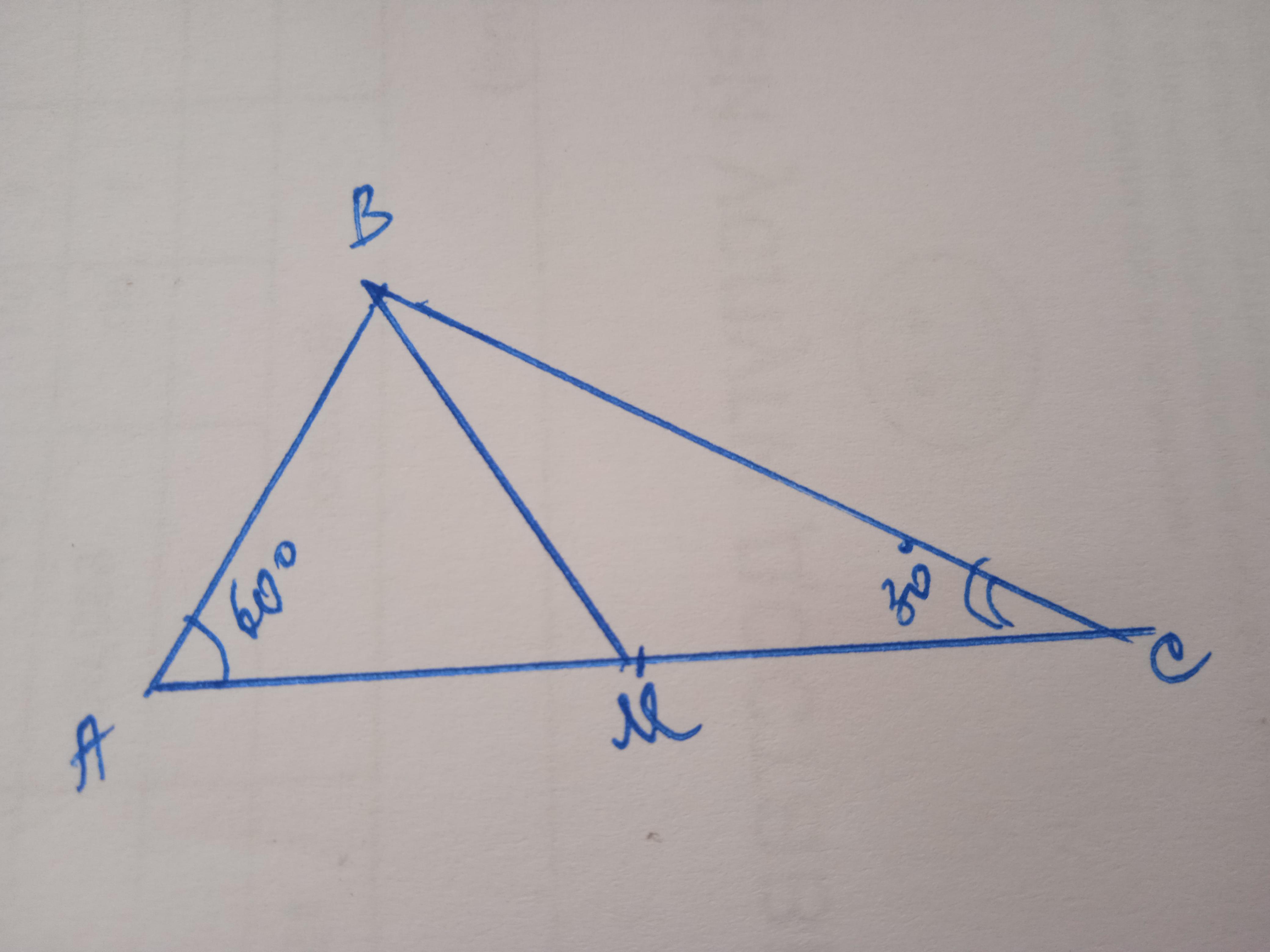 Дано: ΔАВС - прямокутний, ∠В=90°, ∠А=60°, АВ+ВМ=10 см. Знайти АС.