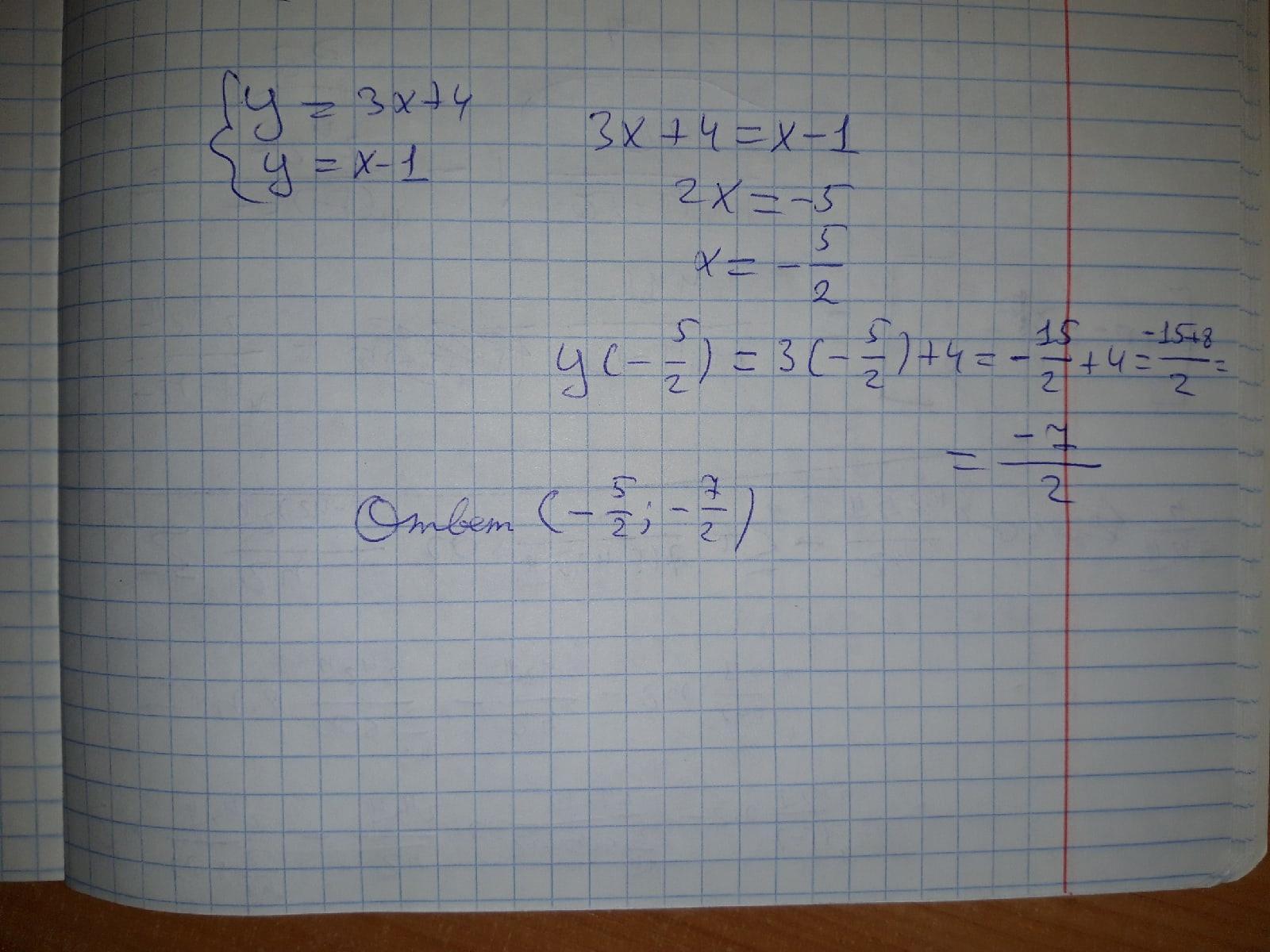 На графике линейной функции y = 3x + 4 найдите точку, абсцисса которой на 1 больше ординаты. СРОЧНО!!!!