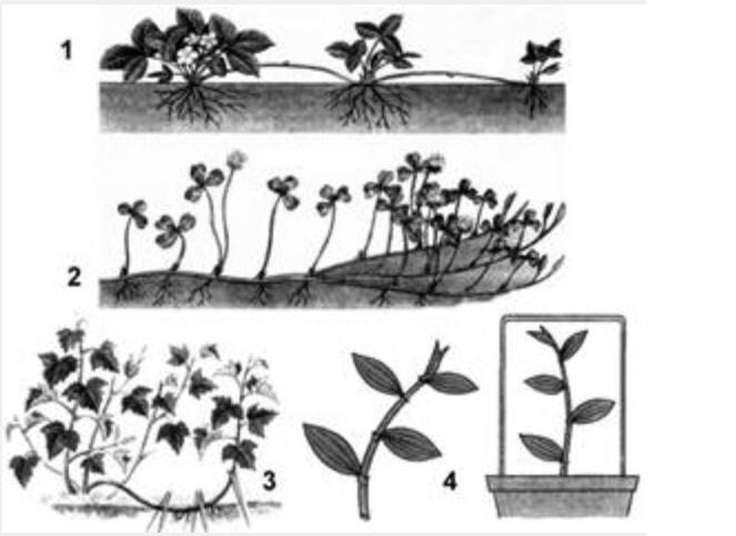 способы нажземногоразмножения 1усами, 2листьями 3 стеблем 4 частью главного стебля