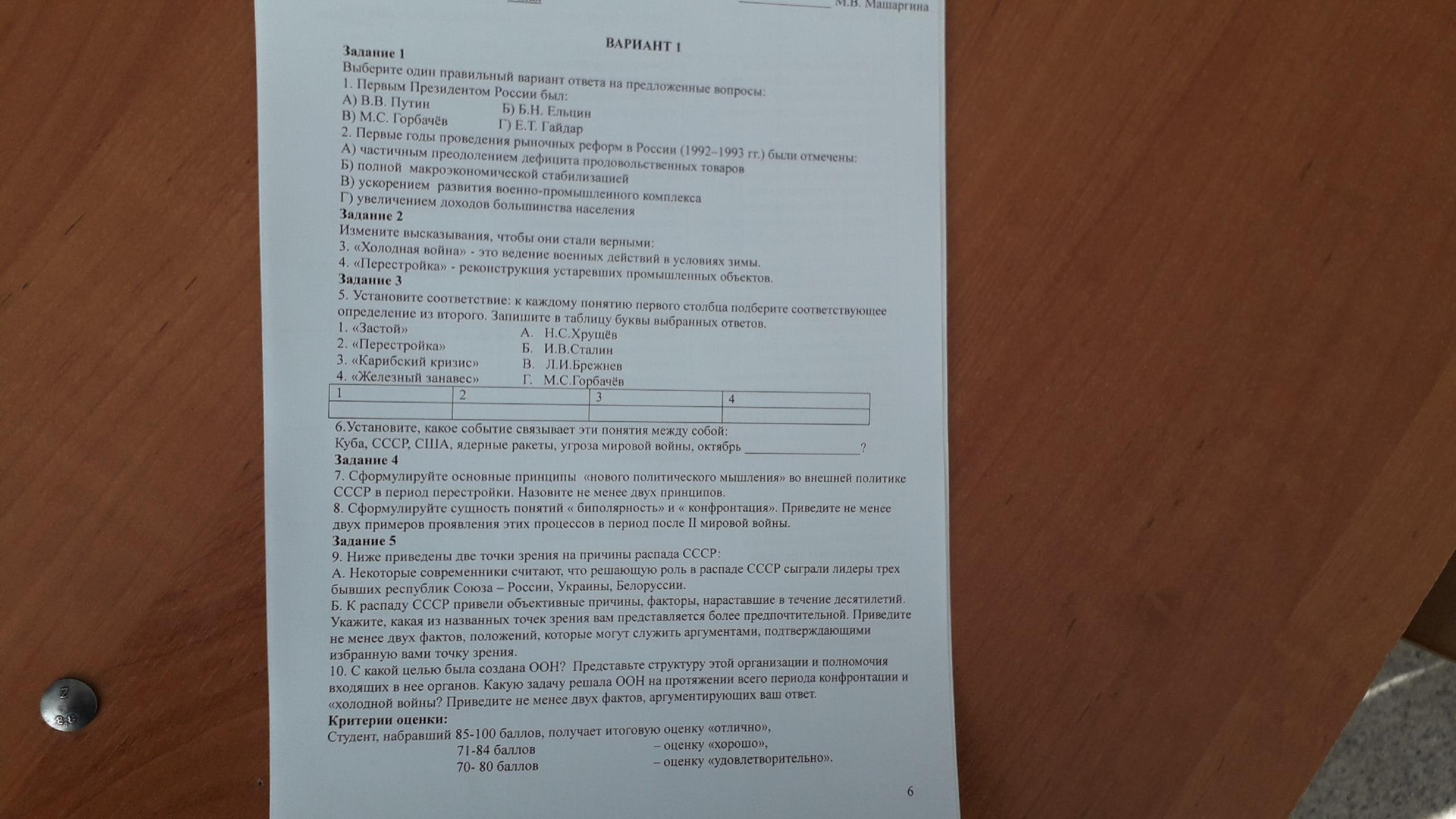 Задание 5. Я согласен с точкой зрения Б. СССР распался из-за причин нарастающих в течение десятилетий. 1) Реформы периода Хрущева. В период хрущевской оттепели были проведены несколько реформ которые по разному удалось воплотить в реальность. В сельском хозяйстве к сожалению такие действия как освоение целины, расформирование МТС, кукурузная эпопея привело к тому, что СССР с середины 60-годов стал испытывать трудности с продовольствием. Приходилось покупать зерно у западных стран, также это выразилось в такие случаи как "Рязанское чудо" и "Новочеркасский расстрел".
