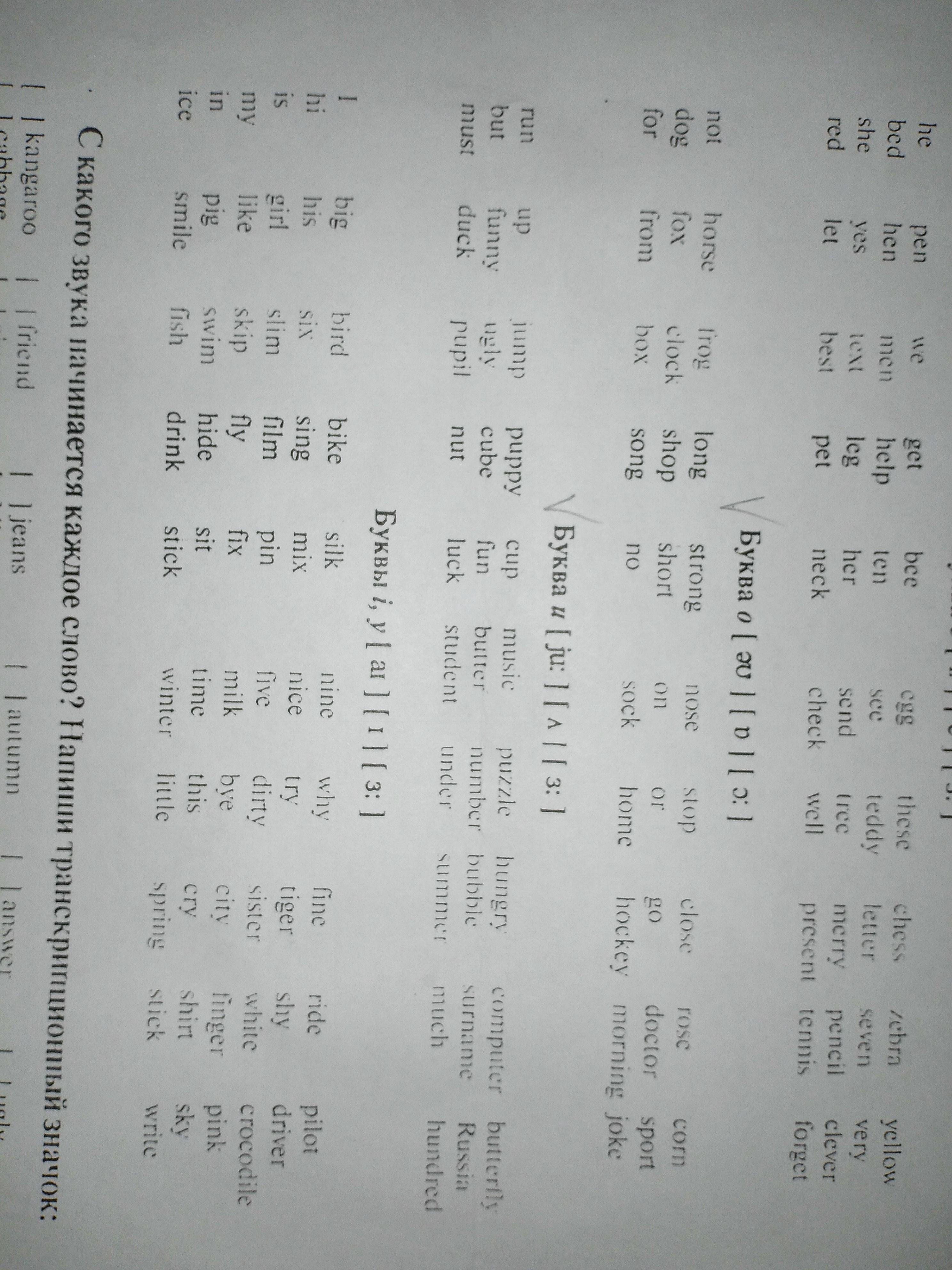 Вспомни правила чтения ударных гласных букв и напиши рядом с каждым словом транскрипционный значок :