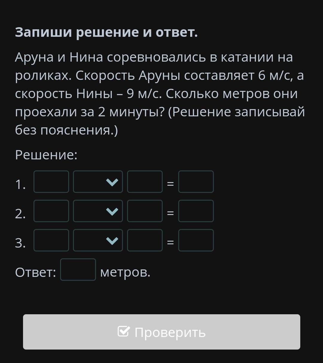 сначала сложим скорость Аруны и Нины и умножим на 2