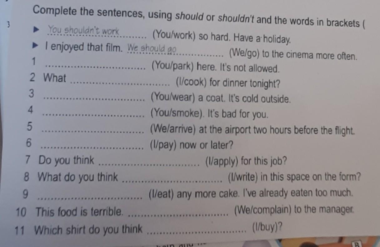 Просто переводи текст и поймешь что надо подставить. Should-должен ли/могу/надо