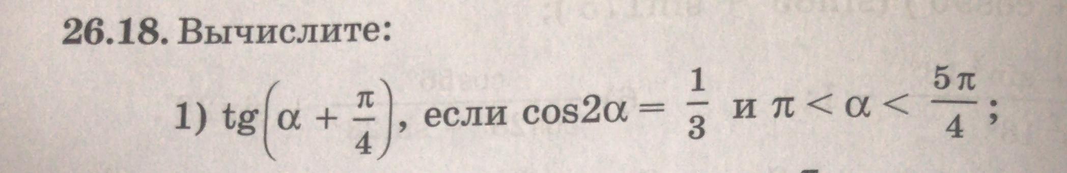 вычислите: tg(a+ pi/4), если cos2a=1/3 и pi