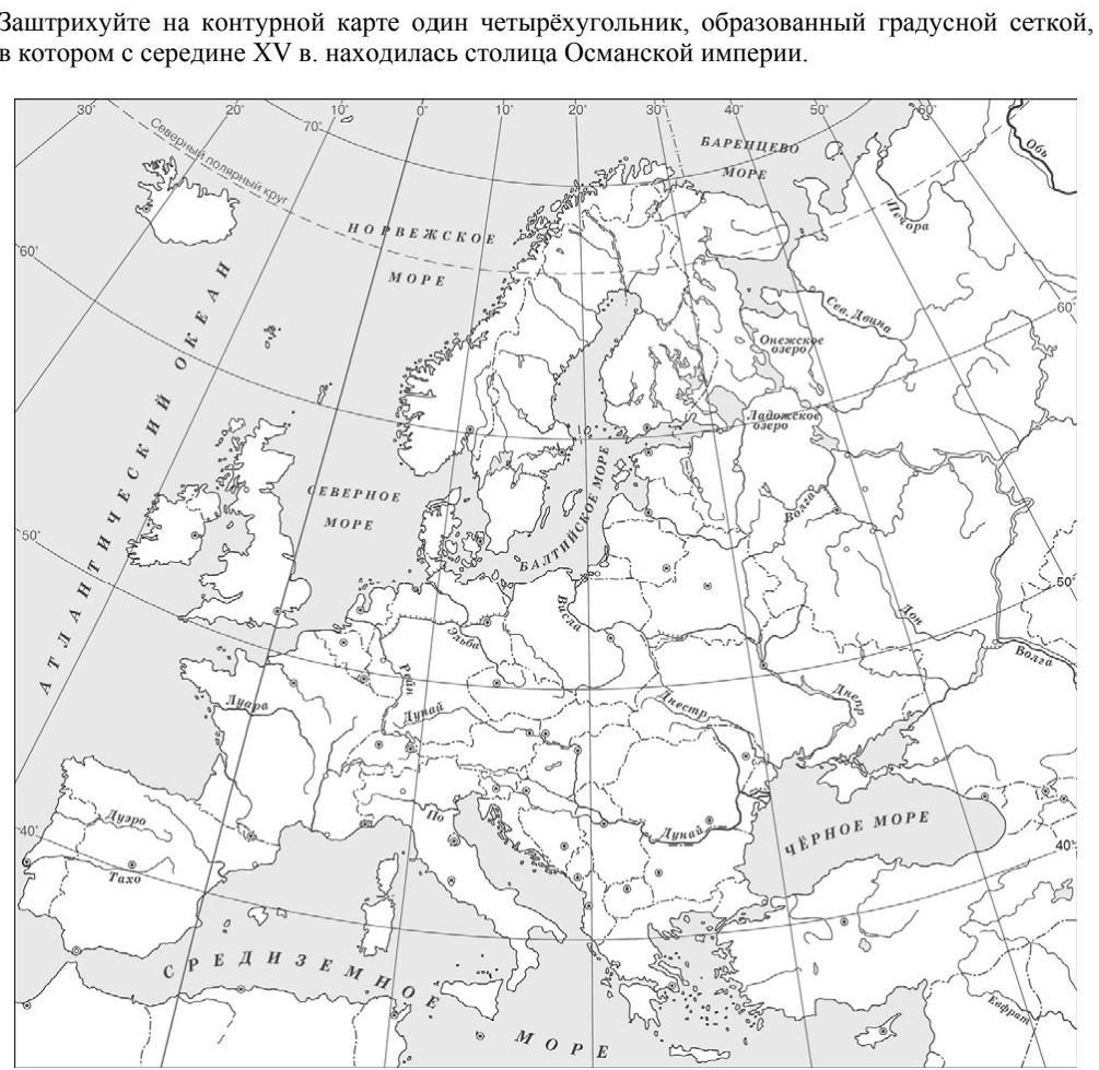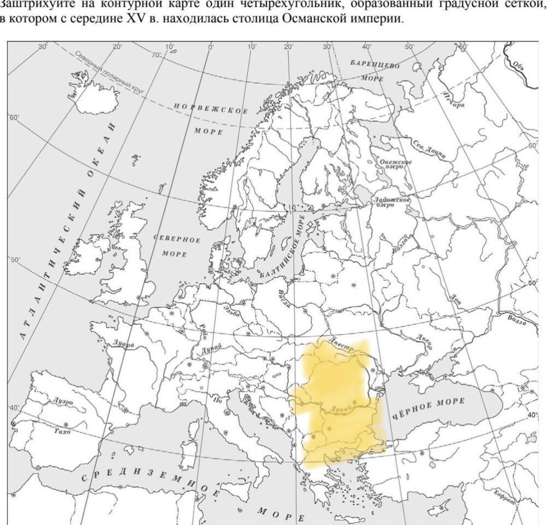 СРОЧНО!! Заштрихуйте на контурной карте один четырёхугольник, образованный градусной сеткой,