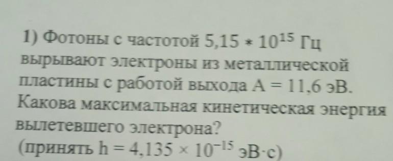 6,62*10^-34Дж*с *5,15*10^15Гц - 11,6эВ*1,6*10^-19Дж=15,533*10^-19Дж. А(вых)=9,7эВ. Вот исправила пересчитала! удачи.