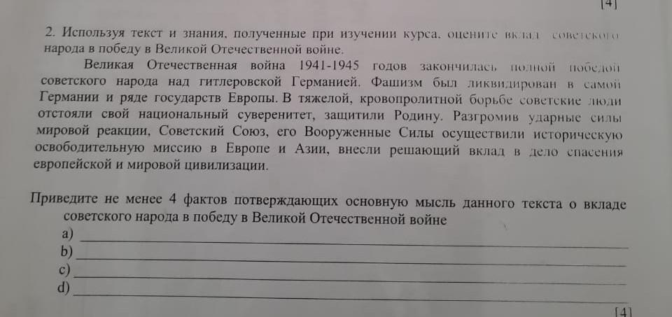 Приведите не менее 4 фактов подтверждающих мысль данного текста о вкладе советского народа в победу в Великой Отечественной войне.