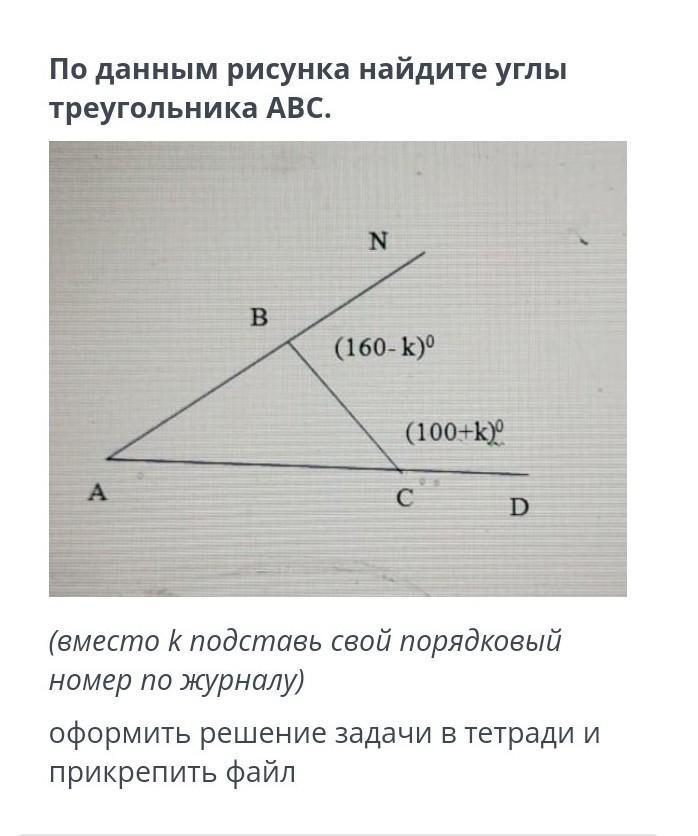 угол ВСА = 180-100-к , угол АВС = 180-160+к, угол ВАС = 180-80+к-20-к = 80 градусов