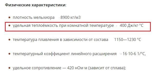 Сплав, из которого сделана мельхировая ложка содержит 35% никеля и 65% меди по массе. Удельная теплоемкость никеля 440 Дж/кг *°C, а удельная теплоемкость меди 380 Дж/кг * °С