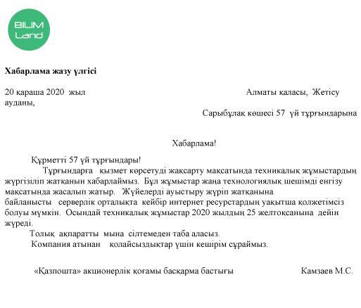 Мәтін адресаты кімдер екенін тап.  «Қазпошта» акционерлік қоғамы 57-үй тұрғындары Алматы қаласы тұрғындары