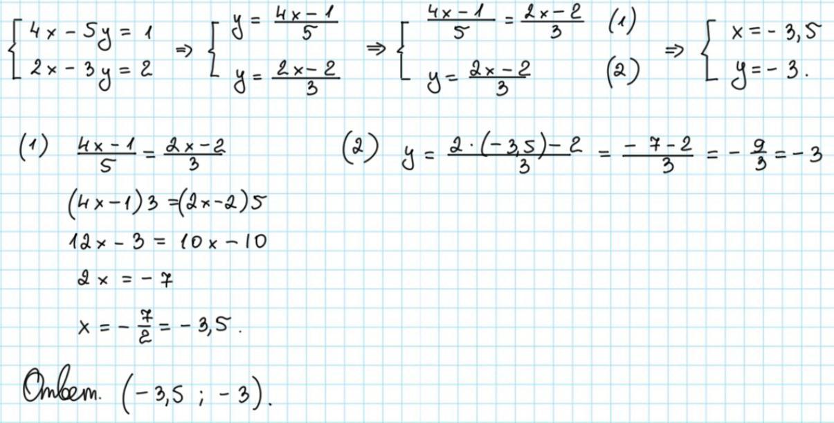 OTBET: решение - пара чисел: (- 7/2; -3)