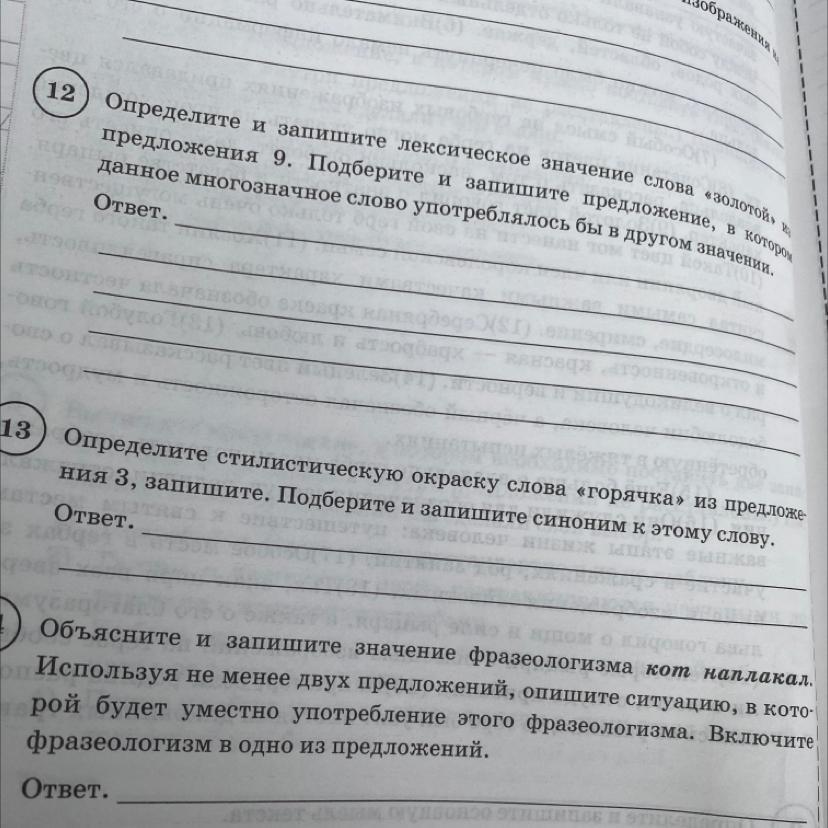 14) Объясните и запишите значение фразеологизма кот наплакал,