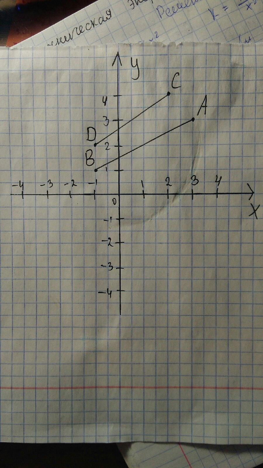 1)Проведите прямые AB и CD. Найдите координаты точки пересечения этих прямых