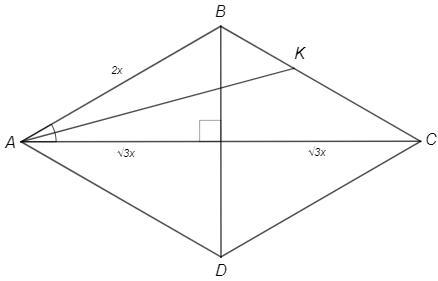 Диагонали делят его на четыре равных треугольника с углами 30°, 60°, 90°, в которых стороны относятся как 1:√3:2.