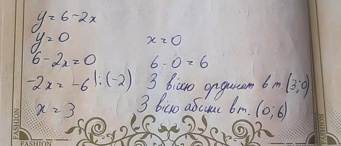 не виконуючи побудови знайдіть координати точок точок перетину з осями координат графіка функції y=6-2x