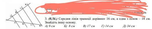 Средняя линия трапеции равна полусумме основ, то есть мы можем выразить неизвестную основу как х и получим уравнение: