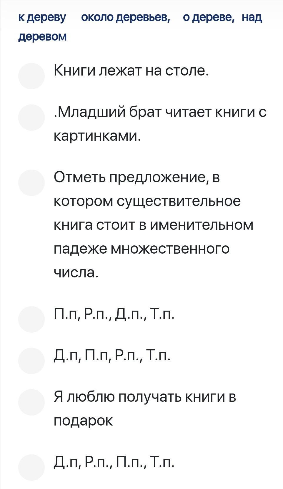 Укажи падежи данных слов в правильном порядке