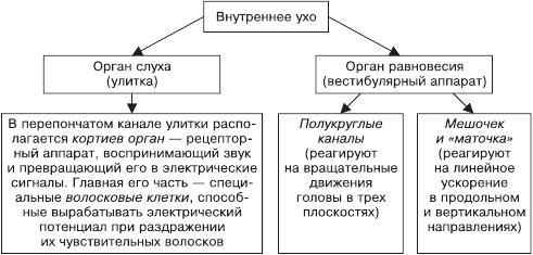 3) Слуховой анализатор человека располагается в толще височной кости и на самом деле включает в себя два анализатора: слуховой и вестибулярный. Оба они работают по одному принципу (регистрируют колебания жидкости в перепончатых каналах при помощи чувствительных волосковых клеток), но позволяют получать разные виды информации.