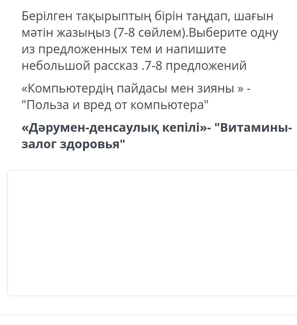 Екі тақырыптада жазып бердім , енді өзіңіздің қалауыңыз қай тақырыпта жазғыңыз келсе! СӘТТІЛІК!