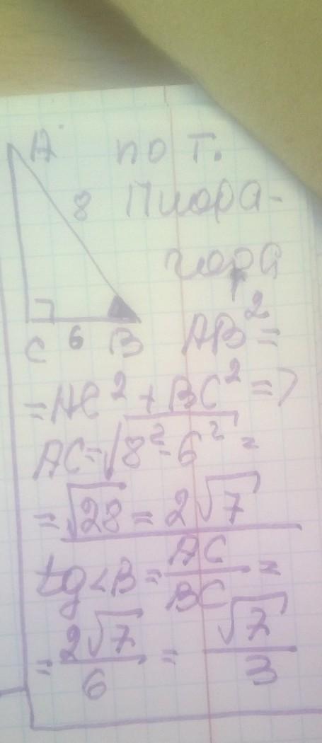 tg= B=AC/CB=8/6=4/3(тангенс отношение противолежащего катета к прилежащему)