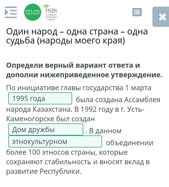 была создана Ассамблея народа Казахстана. В 1992 году в г. Усть-Каменогорске был создан