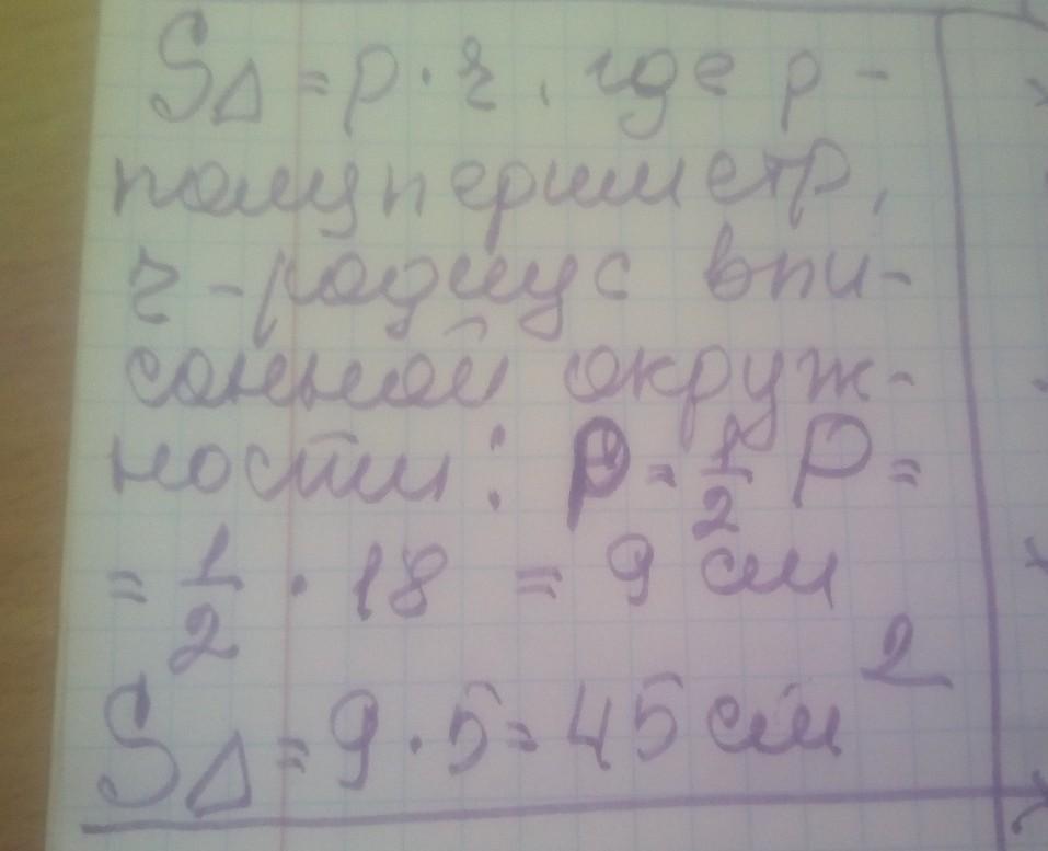 Знайдіть площу трикутника, периметр якого дорівнює 18 см, а радіус