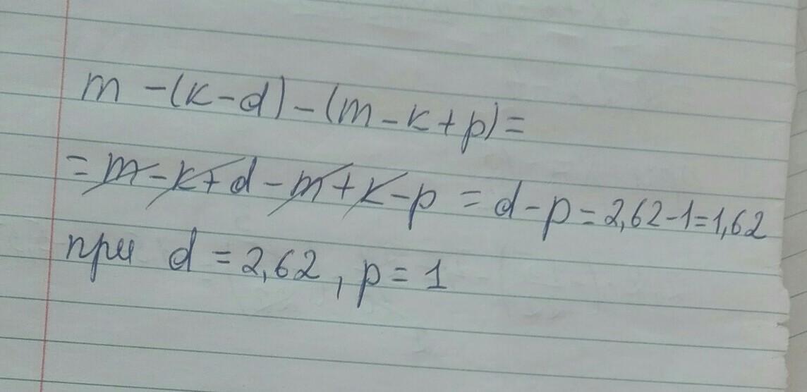 m - (k - d) - (m - k + p), якщо m = -0,63; n = -8,6 d = 2,62; p = 1;