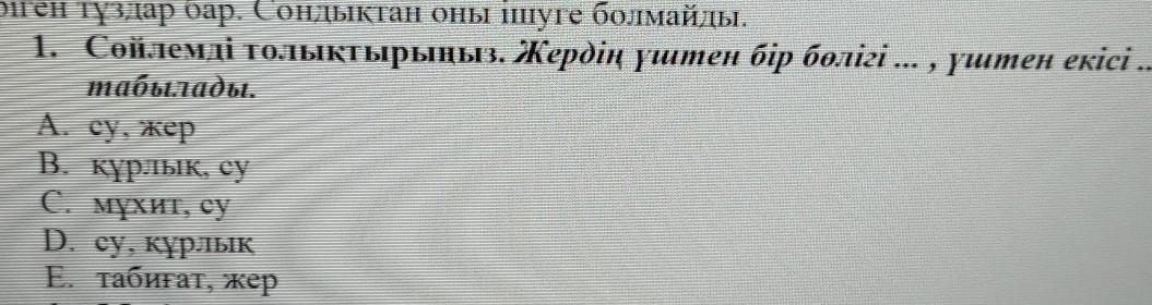 1. Сөйлемді толықтырыңыз. Жердің үштен бір бөлігі... , үштен екісі ... болып