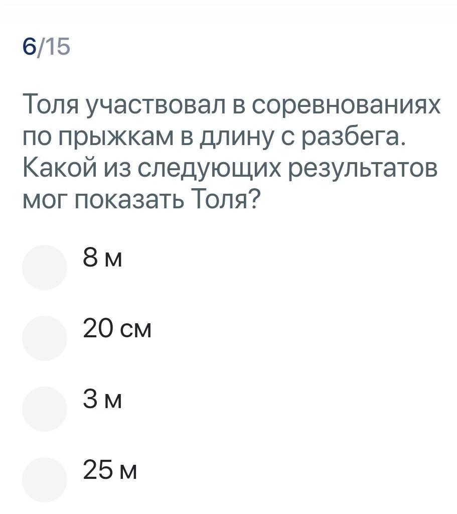 я поражаюсь с вопросов. 3 м возможно, так как он вряд-ли прыгнет 20 см или 25 м, а 8 вряд-ли так это рекорды.