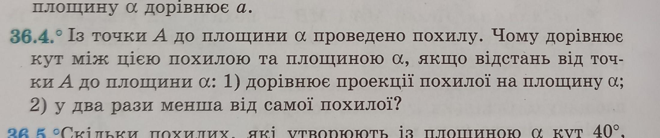 ВІДПОВІДЬ: кутВ між площиною та похилою дорівнює 45°