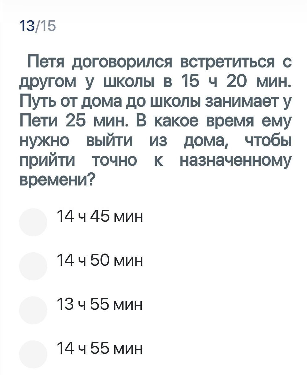 15 ч 20 мин - 25 мин = 14 ч 55 мин