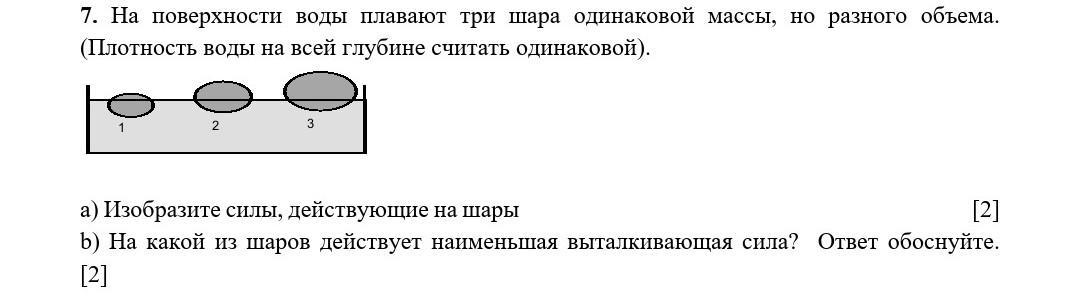 b) На какой из шаров действует наименьшая выталкивающая сила? Ответ обоснуйте.