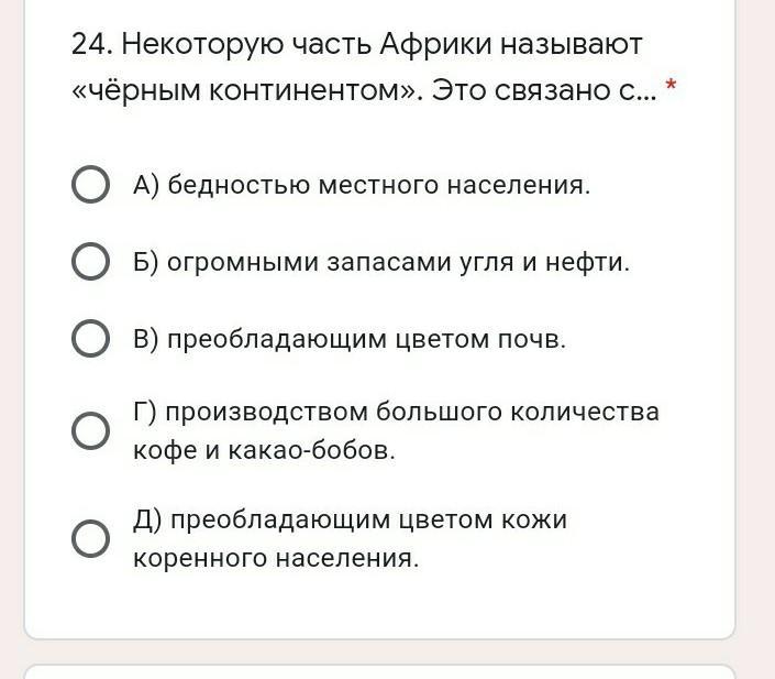 Ответ совершенно очевиден, большинство населения континента - негры (от латинского niger - чёрный), то есть чернокожие, они же населяют и большую часть территории. Это выяснилось совсем недавно, ведь до начала XIX века чёрный континент был белым пятном на карте. И всего лишь за сто лет, к началу XX века Африку исследовали и поделили, то бишь колонизировали.