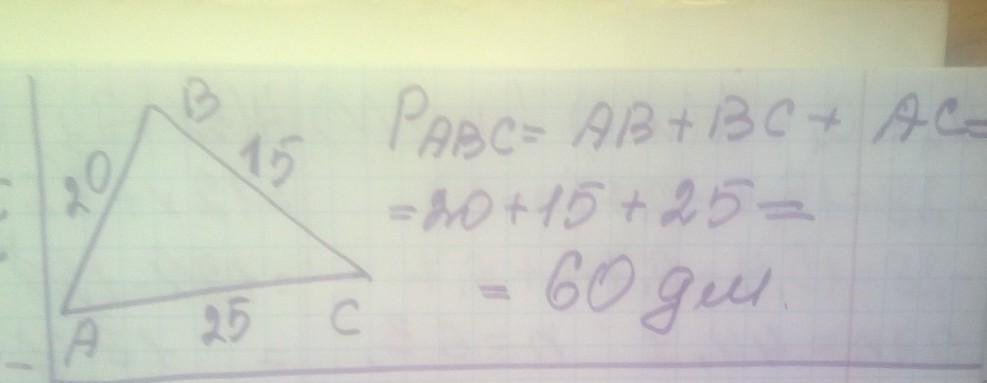 AC = 25 дм, ВА = 20 дм и ВС = 15 дм.