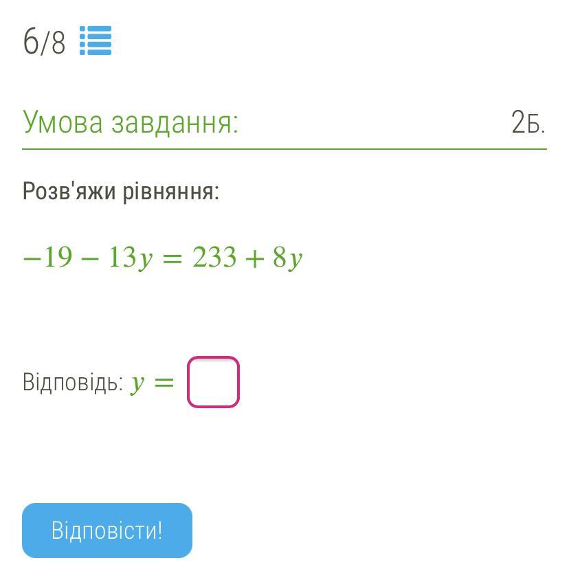 8у + 13у = -19 - 233 (при переносі знаки міняються)