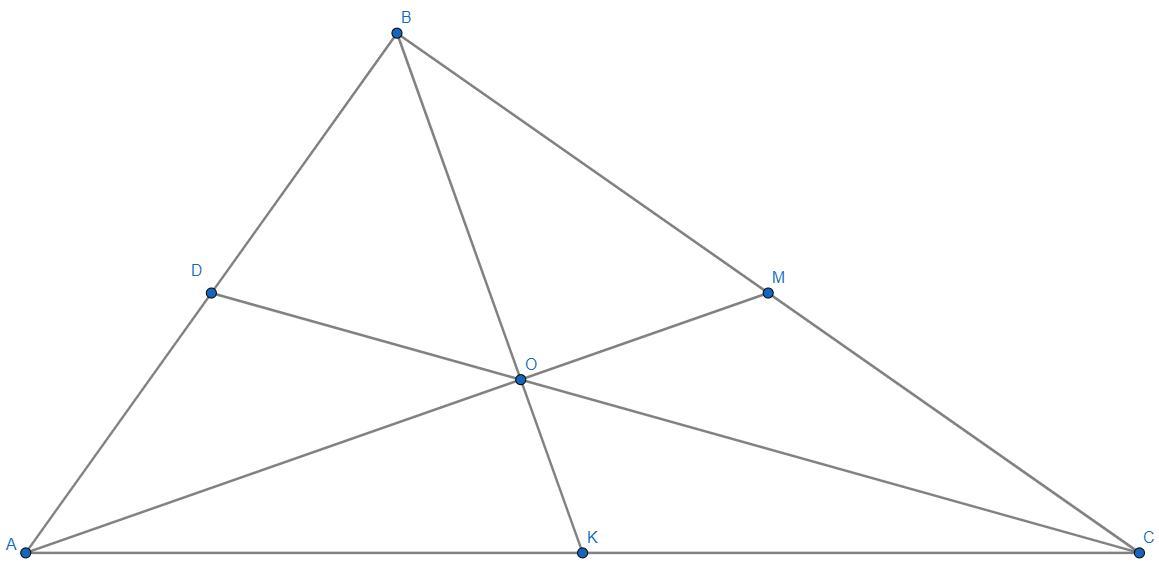 Mедианы AM и BK треугольника ABC равны 9 см и 12 см соответственно, а угол между ними равен 90°. Найдите медиану CD.
