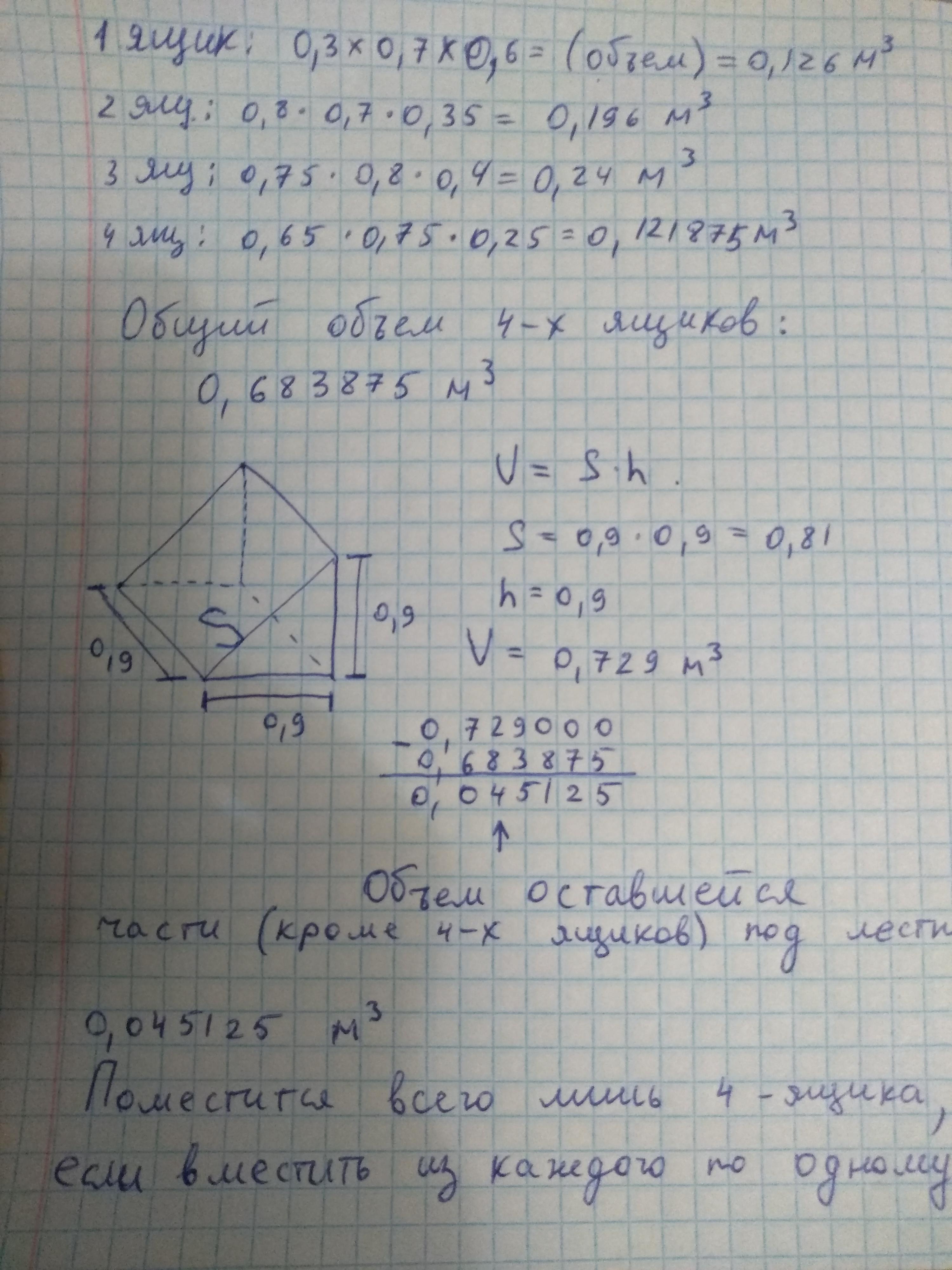 Запишите решение и ответ. P.S Картинку с лестницей и ящиком прикрепила ниже.Зайки,кто знает,помогите,пожалуйста)Заранее огромное спасибо!