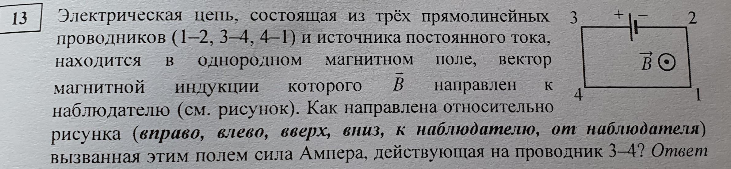 ток идет от + к - следовательно 4 пальца направлены вниз