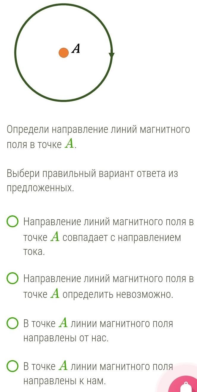 Электрический ток в витке направлен так, как показано на рисунке стрелкой.