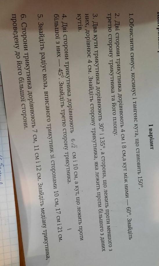 Помогите пожалуйста последовательно решить Геометрию, 9 класс, тема "Розв'язування трикутників" (Решение треугольников).