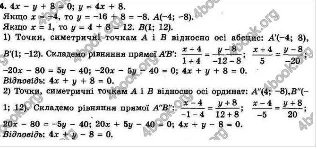 Запишіть рівняння прямої, яка симетрична прямій 4х-у+8=0 відносно: