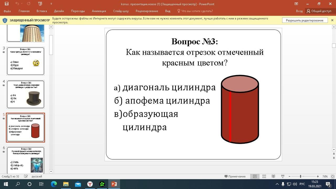 Диагональ цилиндра соединяет противоположные точки диаметров окружностей, служащих основаниями.