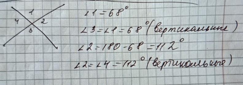 При пересечении двух параллельных прямых сумма углов пересечения составляет 68 градусов. Найдите все полученные углы