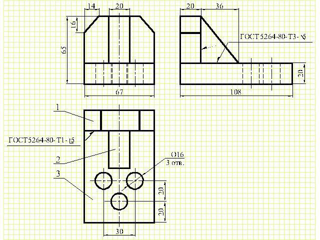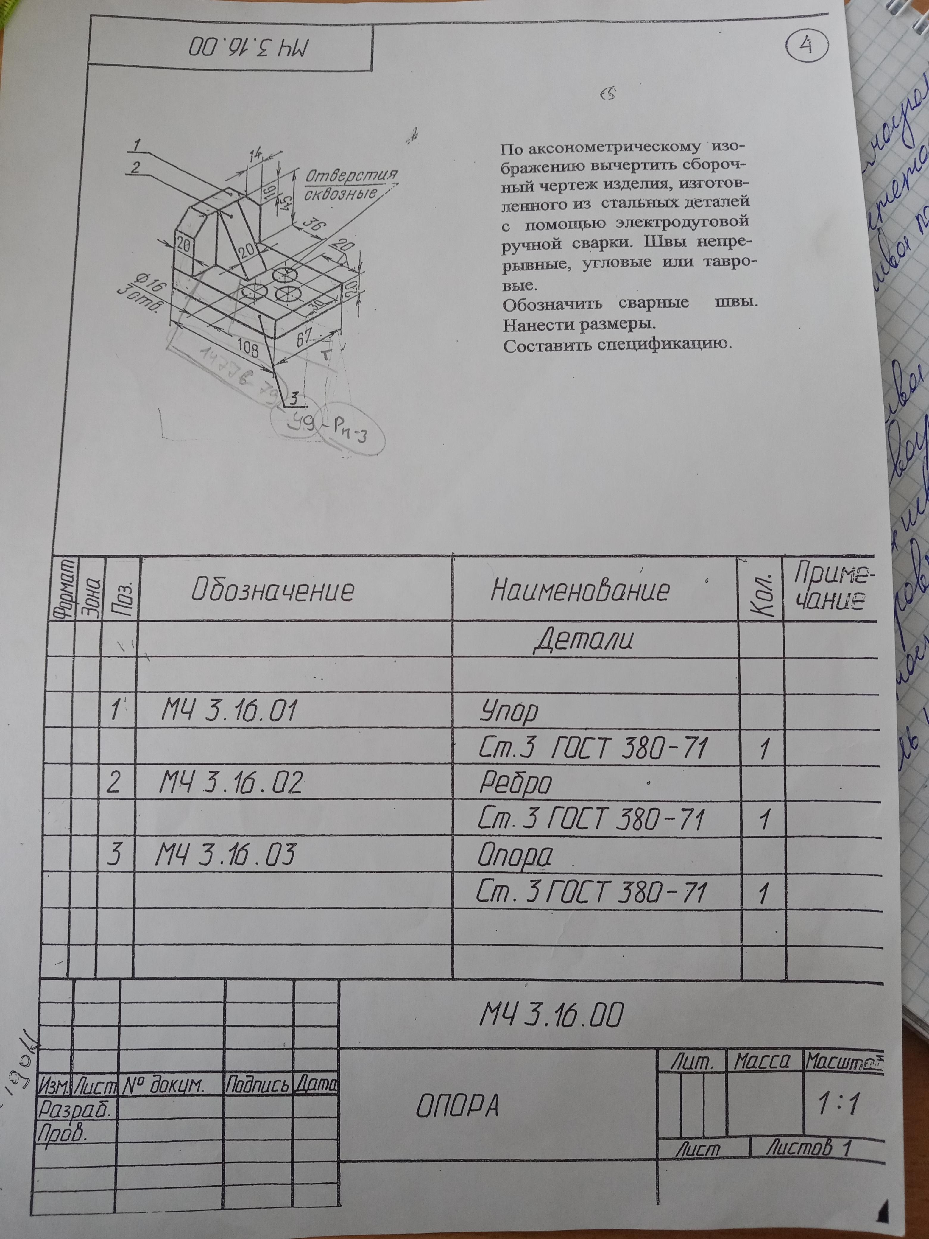 Начертила три вида сборки, указав сварные швы (надеюсь правильно) и позиции, согласно спецификации.