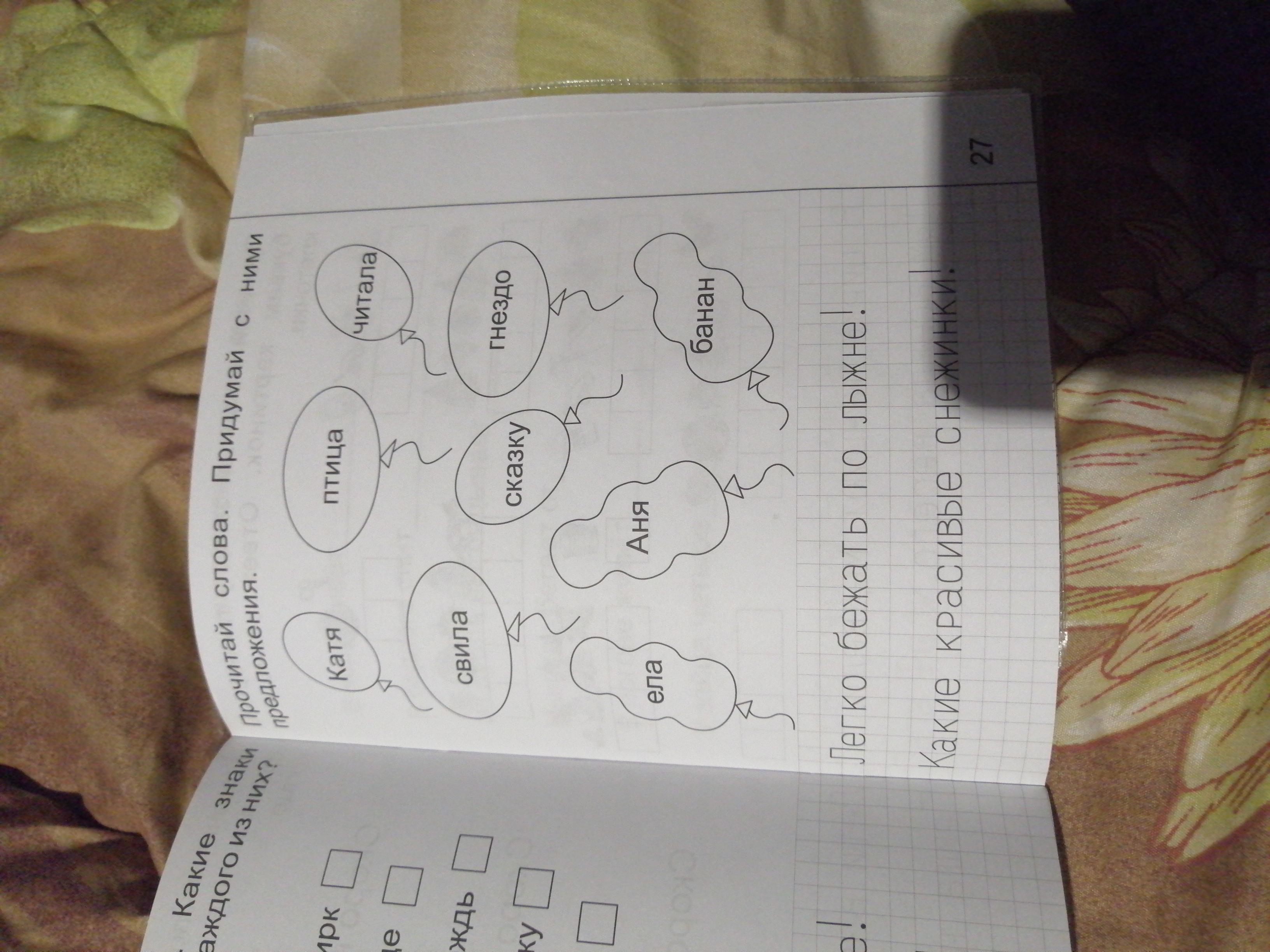 Аня читала сказку. Катя ела банан. Птица свила гнездо.
