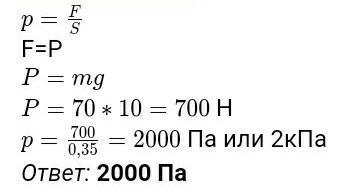 P = Fтяжести / s = 700 / 0,35 = 2000 Паскаль (2 кПа).