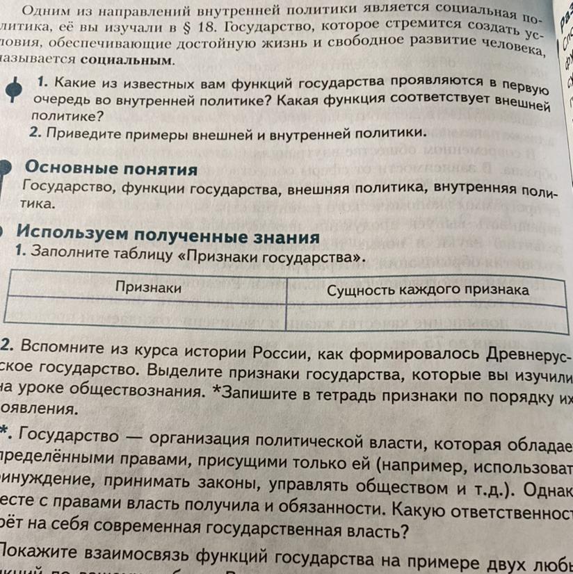 СРОЧНО!!! Даю 20 баллов...... !!!!!! Таблица признаки государства признаки сущность каждого признака